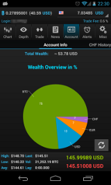 Get a detailed account overview including a pie chart displaying your wealth distribution between your currency accounts, the total worth of all your assets in a choosen currency and your monthly trading volume.