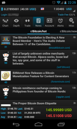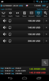 The BTCfx widget shows 24h high, low and latest quote for any of the 18 currencies directly on your home screen. The auto update inverval is 30 minutes. The widget can be used without subscription (for free).